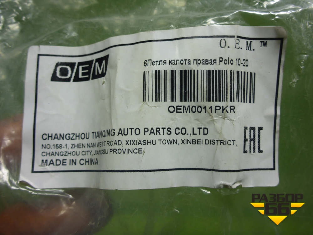 Петля капота правая (дубликат новая) (OEM0011PKR) для Volkswagen Polo (седан) с 2010г (Поло) в Челябинске