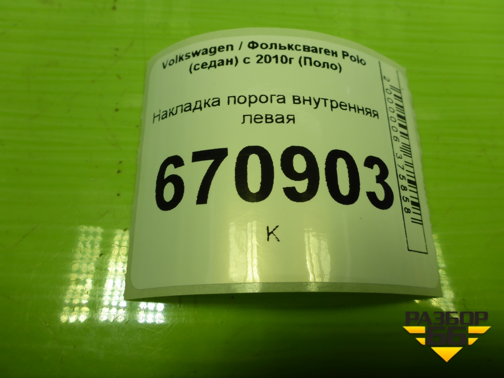 Накладка порога внутренняя левая (6RU853371B) для Volkswagen Polo (седан) с 2010г (Поло) в Челябинске