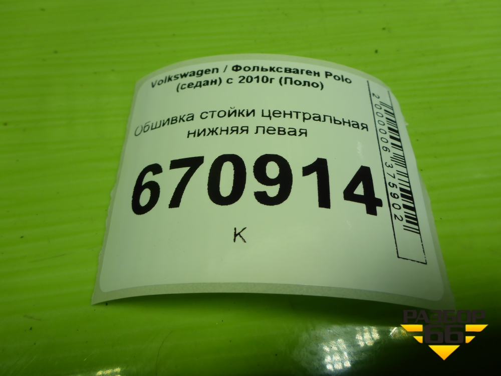 Обшивка стойки центральная нижняя левая (6RU867297) для Volkswagen Polo (седан) с 2010г (Поло) в Челябинске
