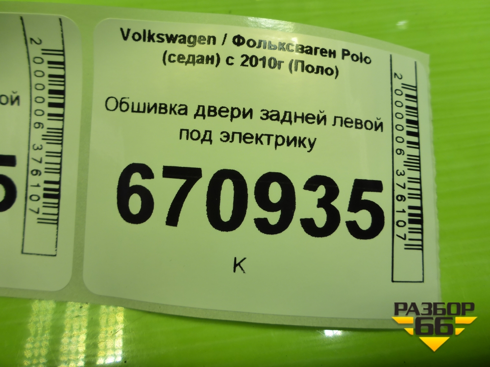 Обшивка двери задней левой под электрику (6RU867211) для Volkswagen Polo (седан) с 2010г (Поло) в Челябинске