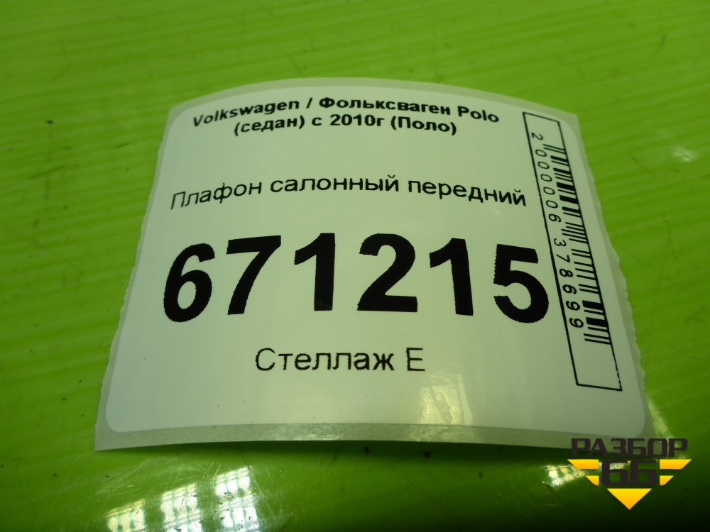 Плафон салонный передний (6Q1947105L) для Volkswagen Polo (седан) с 2010г (Поло) в Челябинске