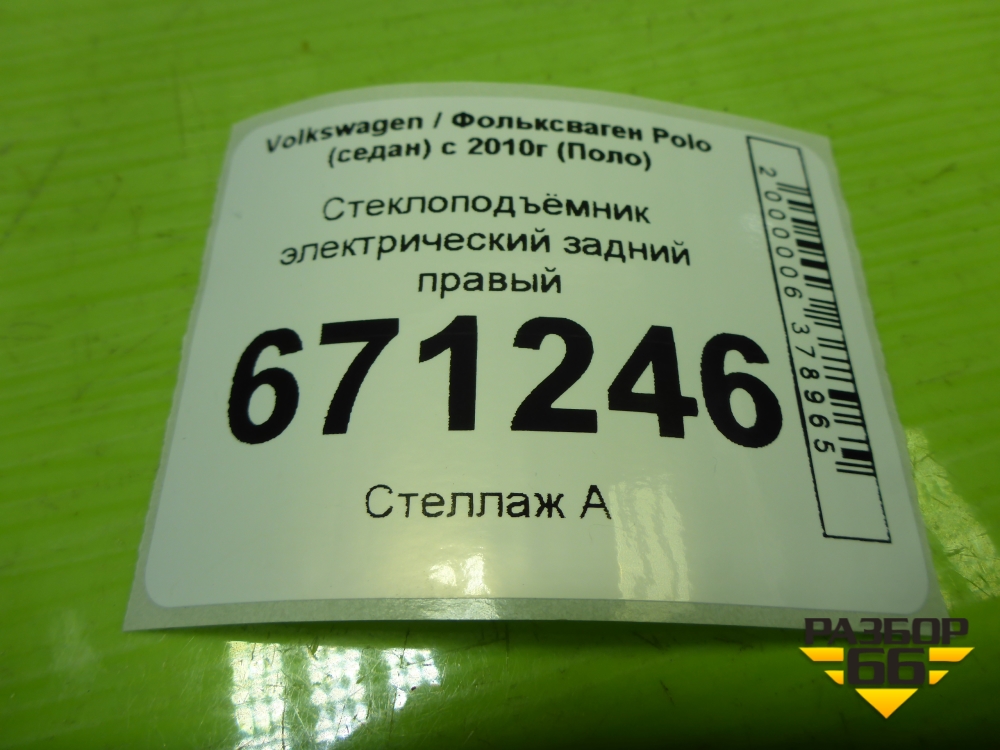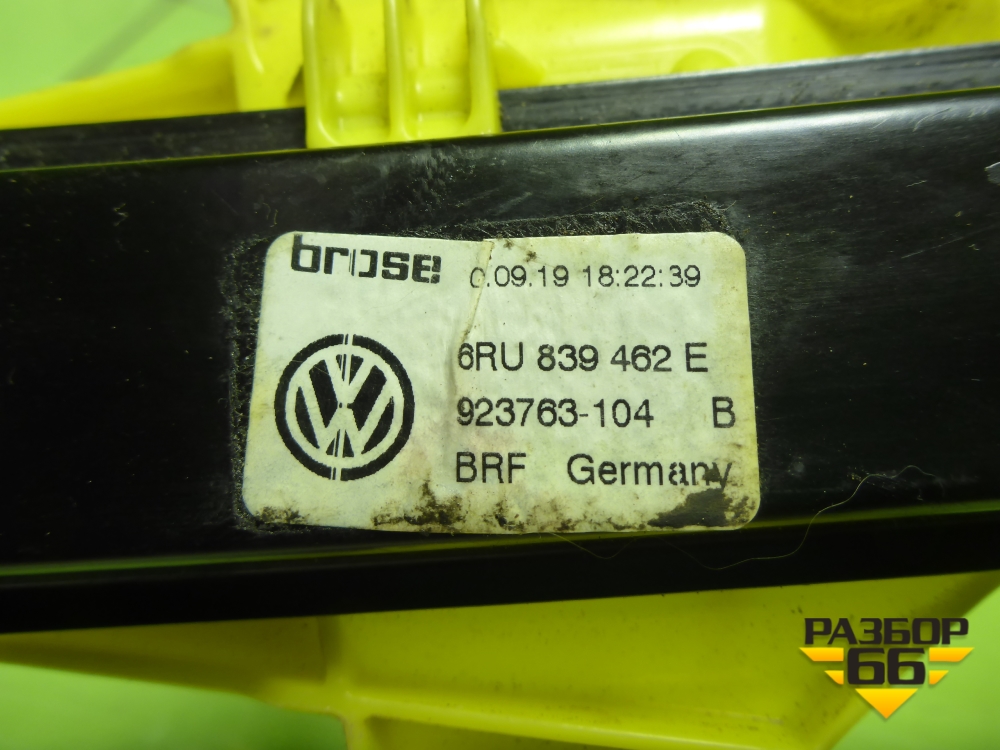 Стеклоподъёмник электрический задний правый (без моторчика) (6RU839462E) для Volkswagen Polo (седан) с 2010г (Поло) в Челябинске