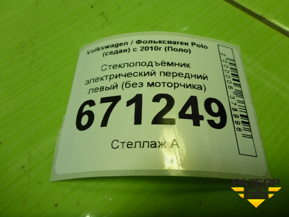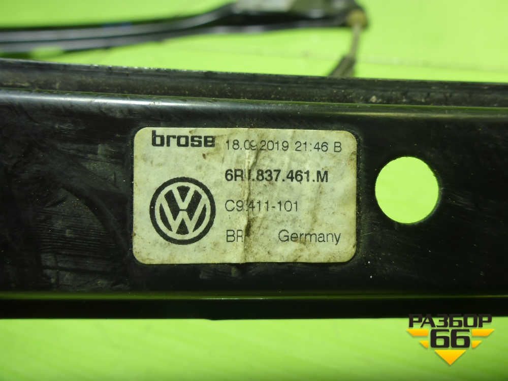 Стеклоподъёмник электрический передний левый (без моторчика) (6RU837461M) для Volkswagen Polo (седан) с 2010г (Поло) в Челябинске