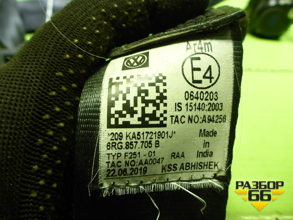 Ремень безопасности передний левый (6RG857705B) для Volkswagen Polo (седан) с 2010г (Поло) в Челябинске