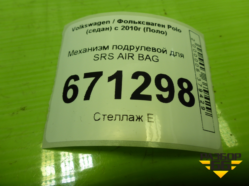 Механизм подрулевой для SRS AIR BAG (6R0959653) для Volkswagen Polo (седан) с 2010г (Поло) в Челябинске