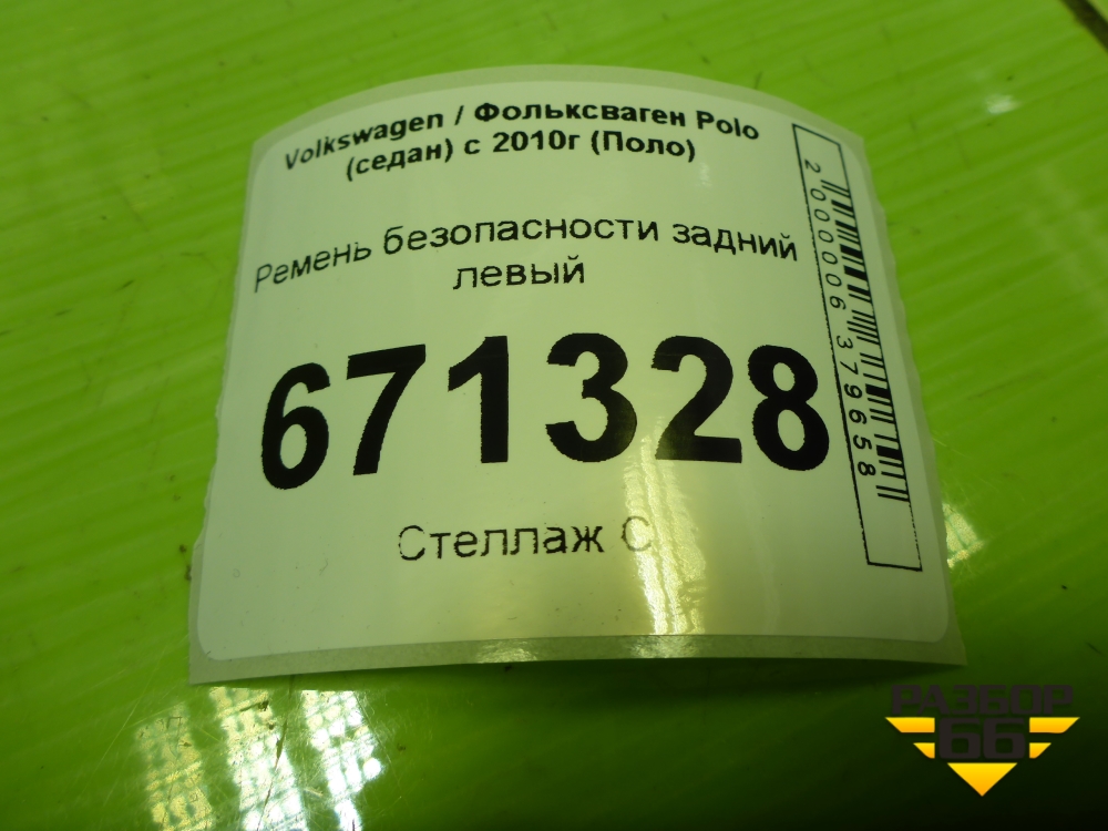 Ремень безопасности задний левый (6RU857805B) для Volkswagen Polo (седан) с 2010г (Поло) в Челябинске