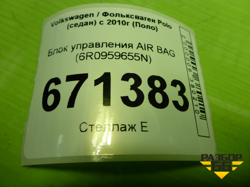 Блок управления AIR BAG (6R0959655N) для Volkswagen Polo (седан) с 2010г (Поло) в Челябинске