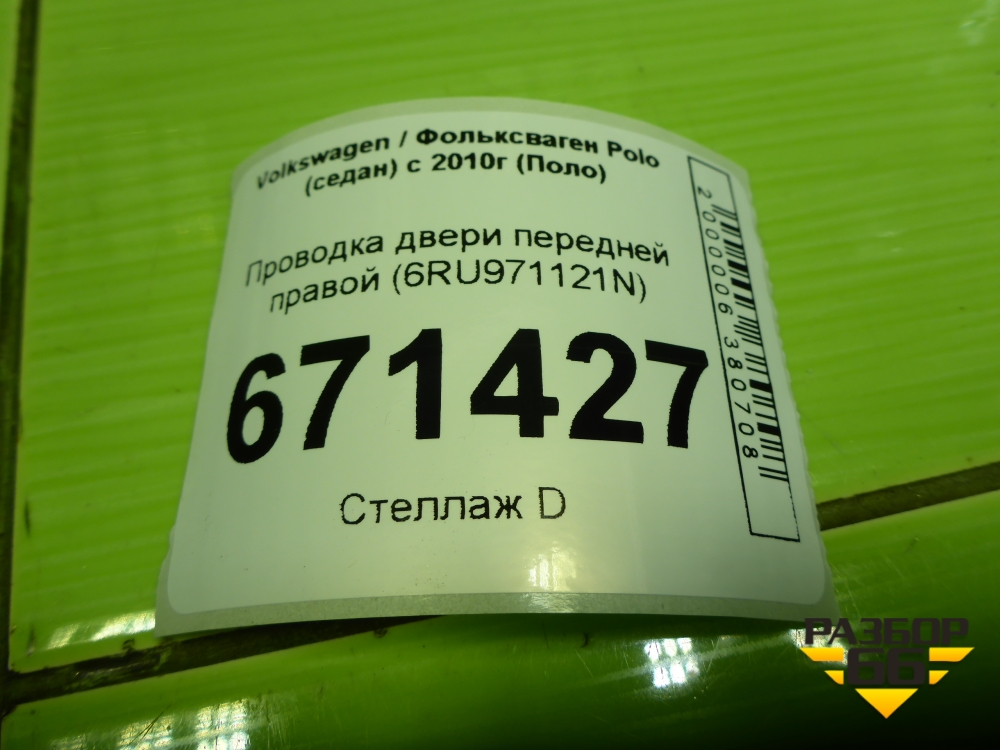 Проводка двери передней правой (6RU971121N) для Volkswagen Polo (седан) с 2010г (Поло) в Челябинске
