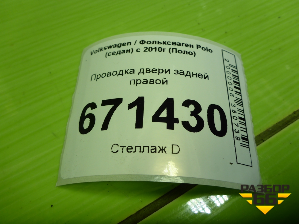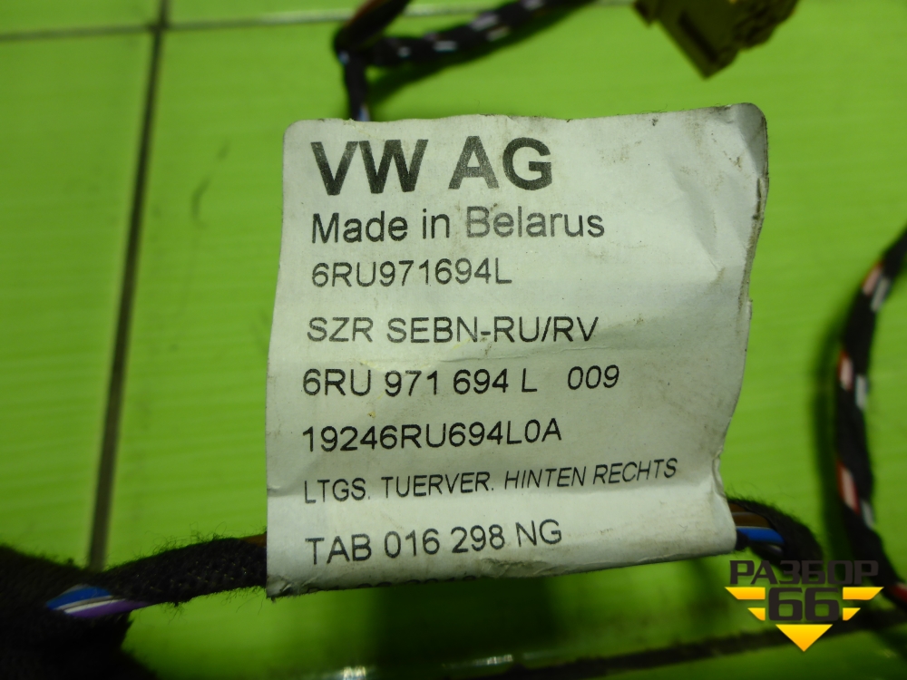 Проводка двери задней правой (6RU971694L) для Volkswagen Polo (седан) с 2010г (Поло) в Челябинске