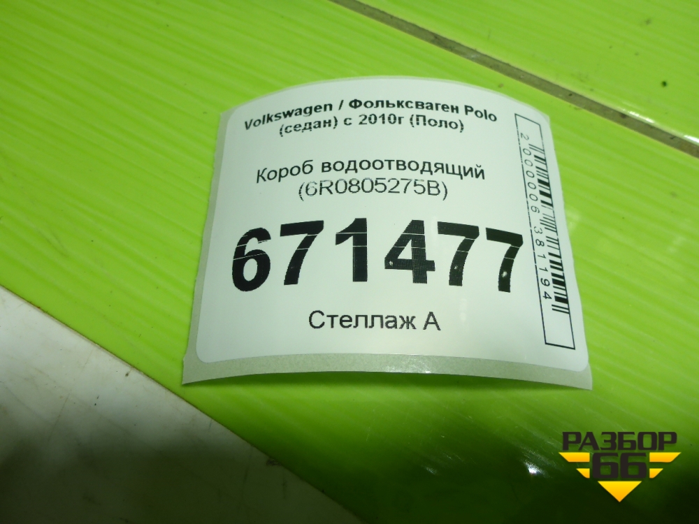 Короб водоотводящий (6R0805275B) для Volkswagen Polo (седан) с 2010г (Поло) в Челябинске