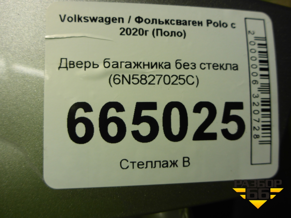 Дверь багажника без стекла (6N5827025C) для Volkswagen Polo с 2020г (Поло) в Челябинске