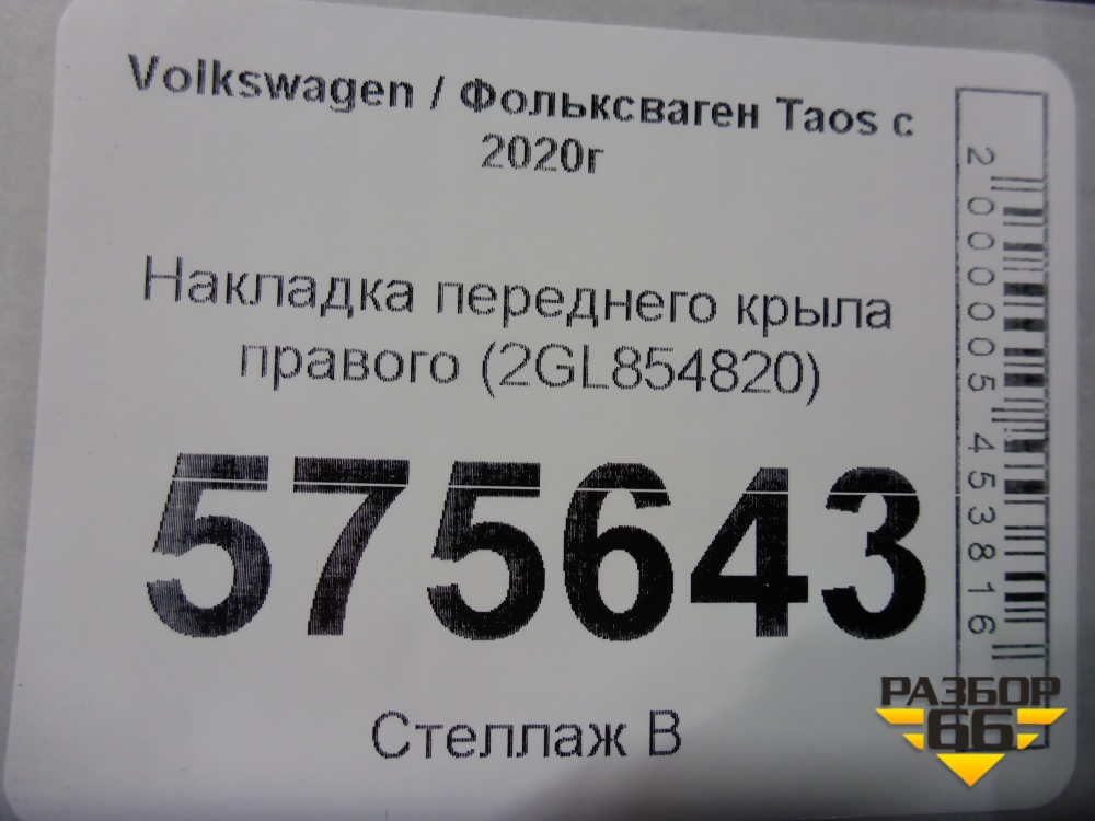 Накладка переднего крыла правого (2GL854820) для Volkswagen Taos с 2020г (Таос) в Челябинске
