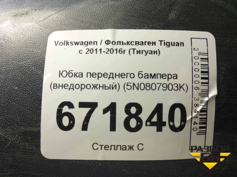 Юбка переднего бампера (внедорожный) (5N0807903K) для Volkswagen Tiguan с 2011-2016г (Тигуан) в Челябинске