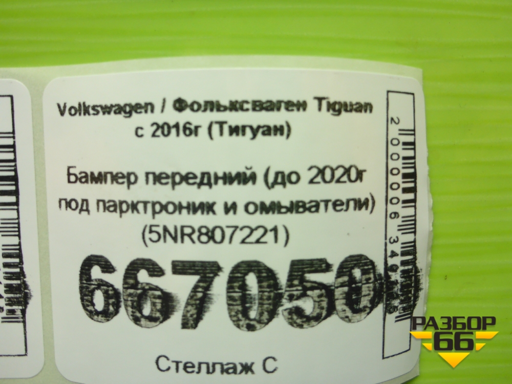Бампер передний (до 2020г под парктроник и омыватели) (5NR807221) для Volkswagen Tiguan с 2016г (Тигуан) в Челябинске