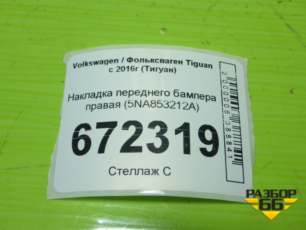 Накладка переднего бампера правая (5NA853212A) для Volkswagen Tiguan с 2016г (Тигуан) в Челябинске
