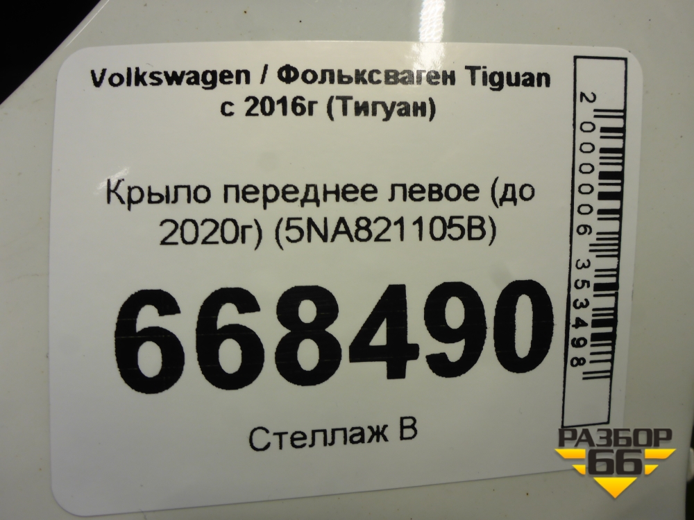 Крыло переднее левое (до 2020г) (5NA821105B) для Volkswagen Tiguan с 2016г (Тигуан) в Челябинске