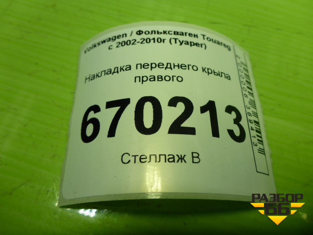 Накладка переднего крыла правого (7L6854960A) для Volkswagen Touareg c 2002-2010г (Туарег) в Челябинске