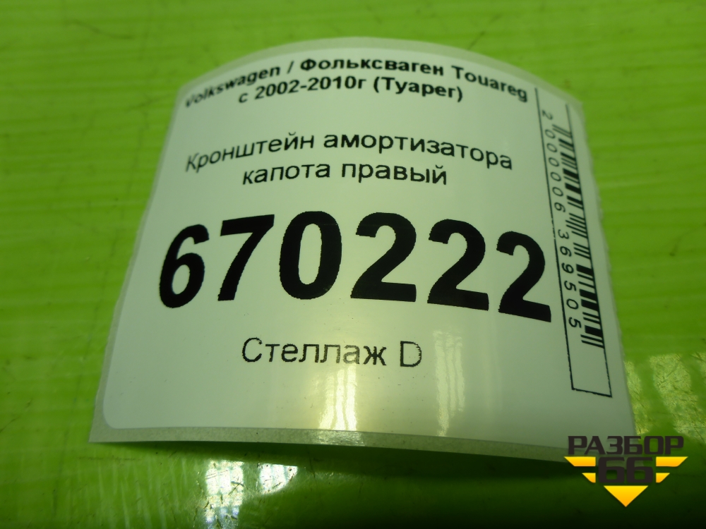 Кронштейн амортизатора капота правый (7L6805888A) для Volkswagen Touareg c 2002-2010г (Туарег) в Челябинске