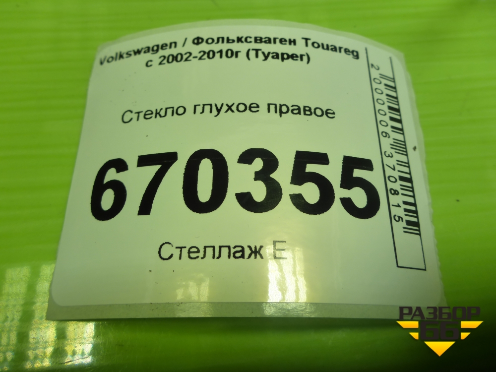 Стекло глухое правое для Volkswagen Touareg c 2002-2010г (Туарег) в Челябинске