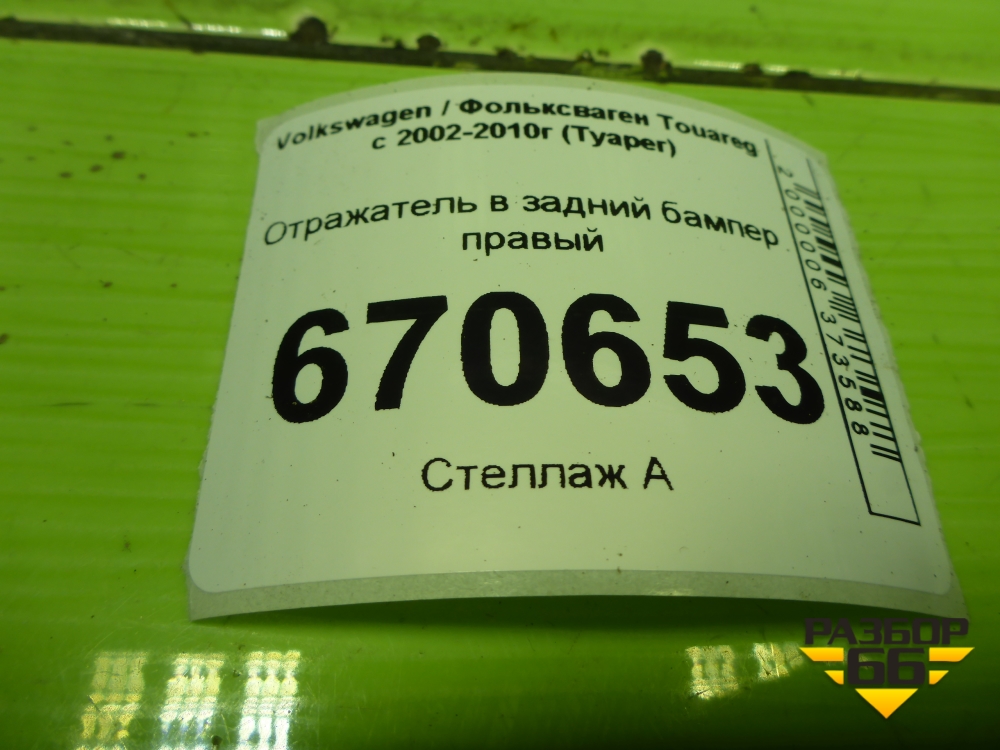 Отражатель в задний бампер правый (7L6945106A) для Volkswagen Touareg c 2002-2010г (Туарег) в Челябинске