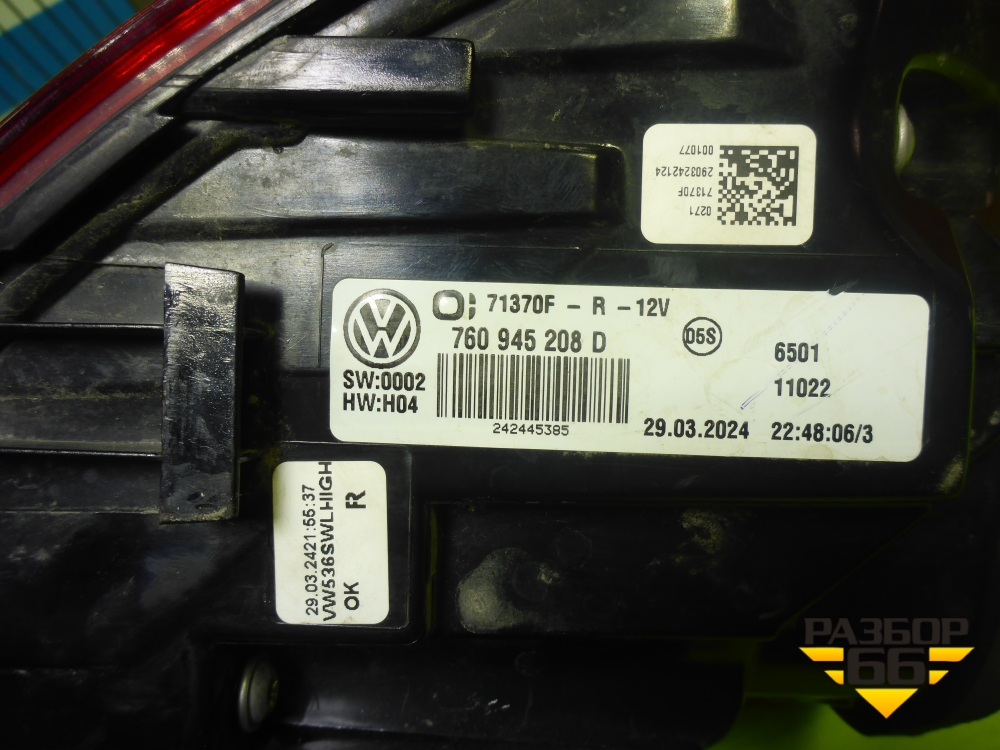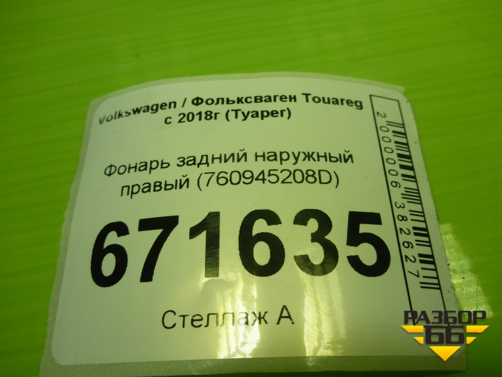 Фонарь задний наружный правый (760945208D) для Volkswagen Touareg с 2018г (Туарег) в Челябинске