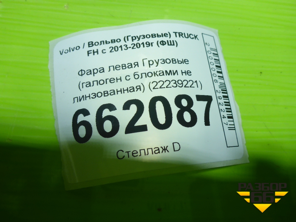 Фара левая (галоген не линзованная с блоками) (22239221) для Volvo TRUCK FH с 2013-2019г (ФШ) в Челябинске
