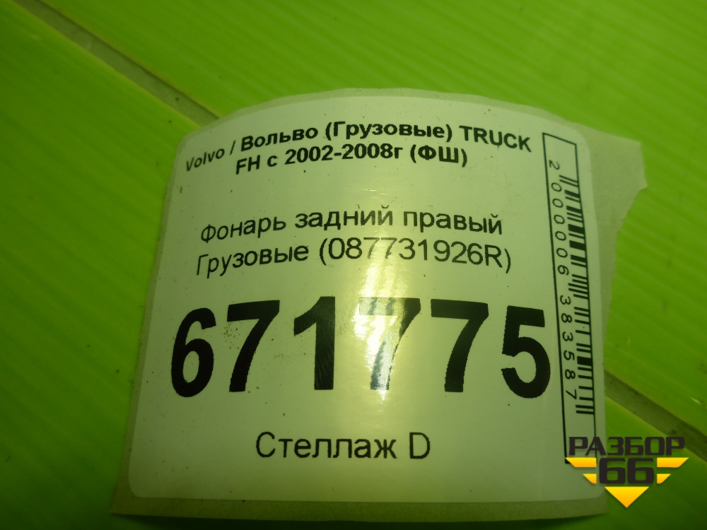 Фонарь задний правый (087731926R) для Volvo TRUCK FH с 2002-2008г (ФШ) в Челябинске