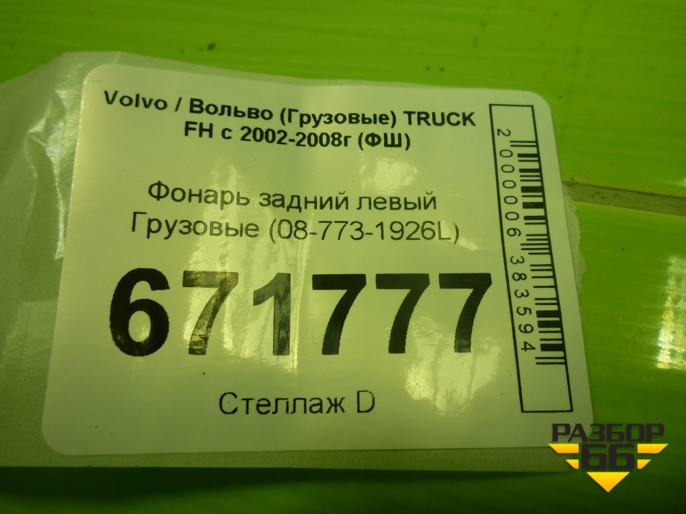 Фонарь задний левый (08-773-1926L) для Volvo TRUCK FH с 2002-2008г (ФШ) в Челябинске