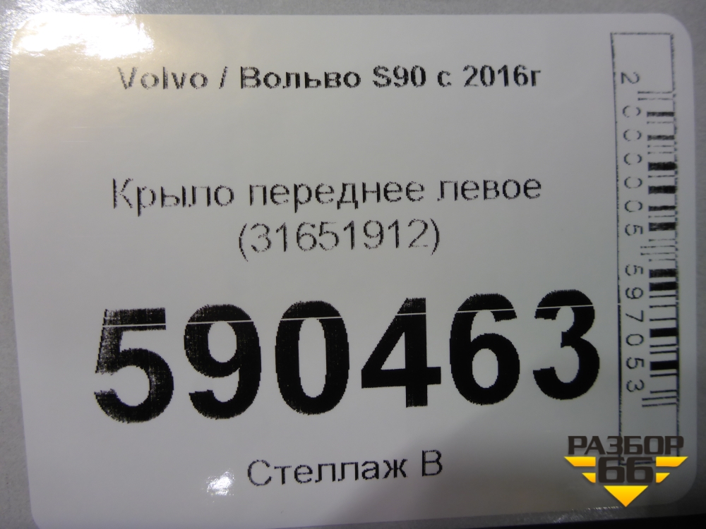 Крыло переднее левое (31651912) для Volvo S90 с 2016г (C90) в Челябинске