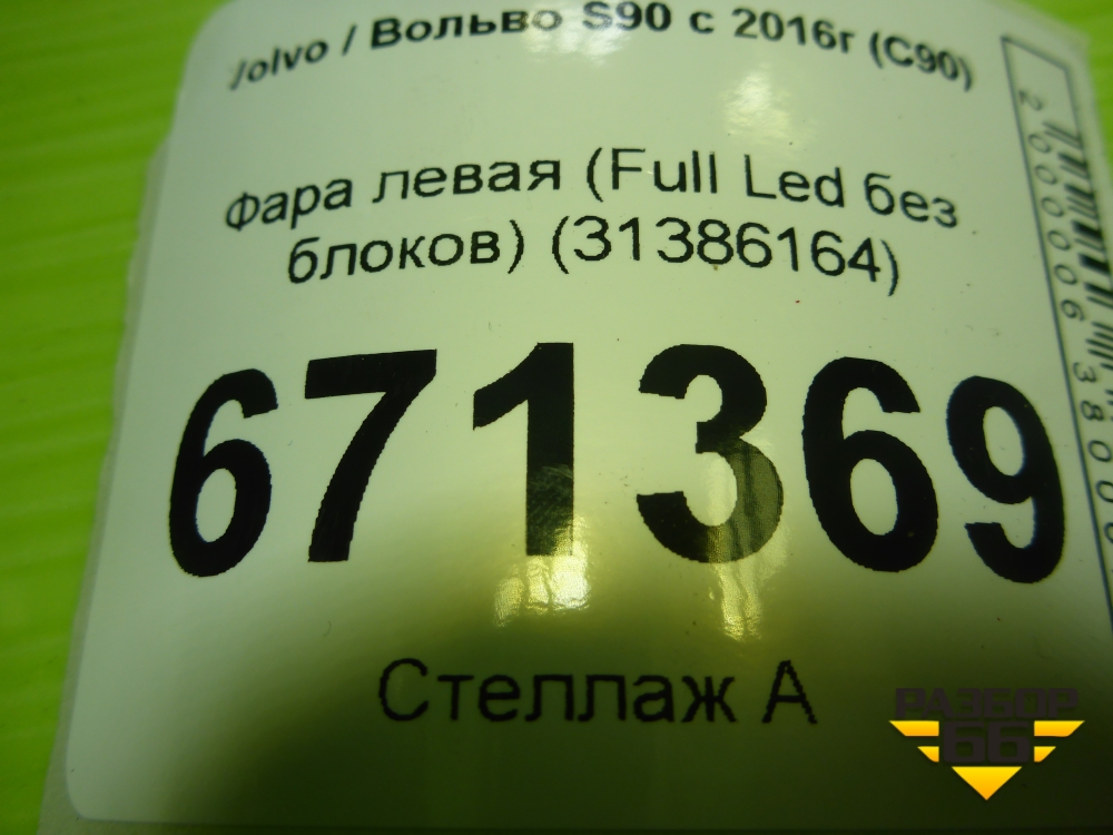 Фара левая (Full Led без блоков адаптивная) (31386164) для Volvo S90 с 2016г (C90) в Челябинске