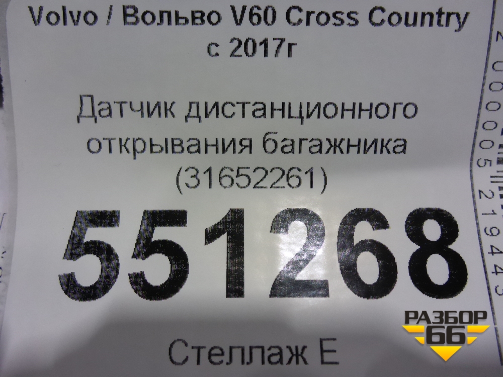 Датчик дистанционного открывания багажника (31652261) для Volvo V60 Cross Country с 2017г (В60 Кросс Кантри) в Челябинске