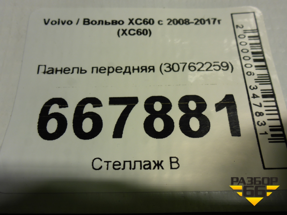 Панель передняя (30762259) для Volvo XC60 с 2008-2017г (ХС60) в Челябинске